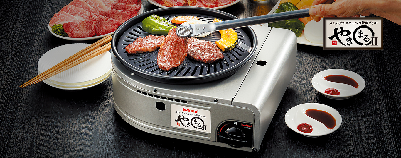 IWATANIの「やきまる」なるカセットガスを使った焼肉専用グリルを。