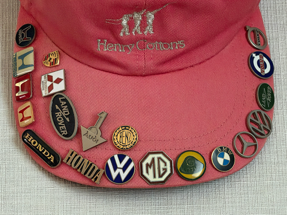 が……その時、件のピンズコレクションケースの中央付近にとあるピンズを見つけたのです。それが面白そうなのでピックアップして赤バッジと交換しました。ついでに?メルセデスの普通のローレルリース+スリーポインティッドスターのピンズもやめてAudiのソレに対抗できるピンズを見つけ出し交換することにしました。