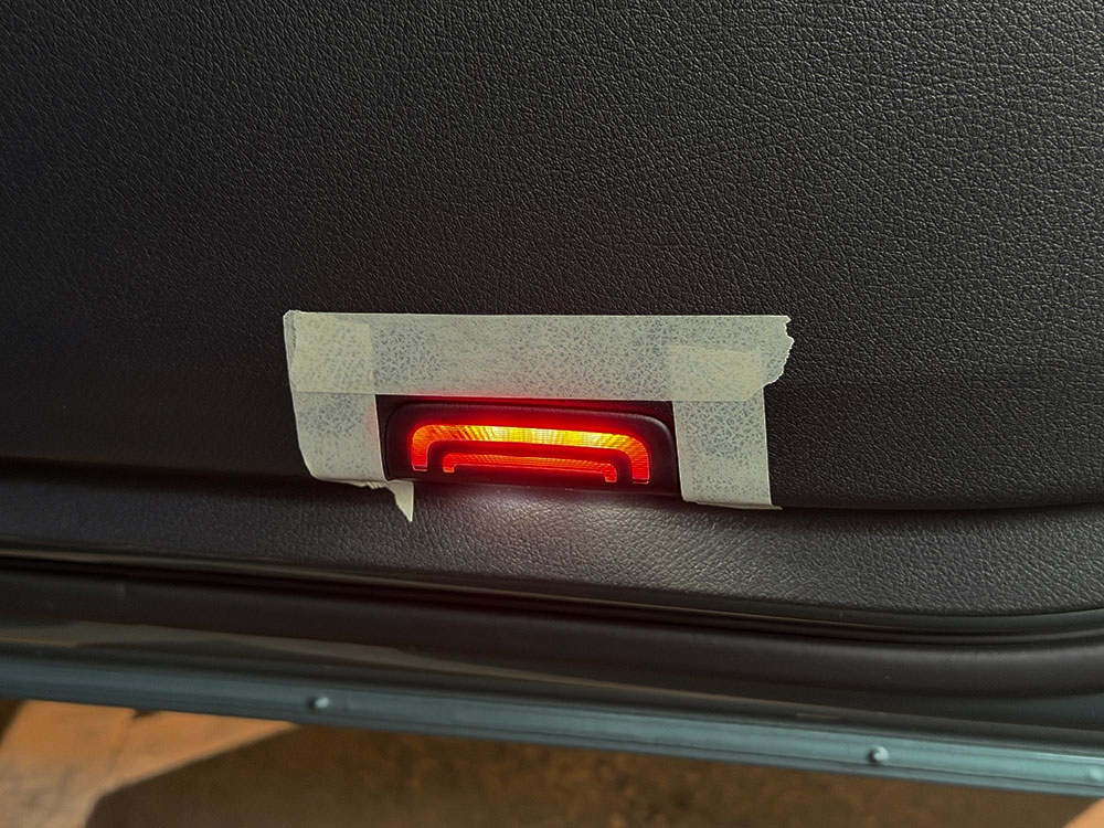 GLC Coupeは後席にカーテシーランプがない(反射板のみ)のですが、SQ5は前後席ともこのプロジェクションが出ていてゲストにも「なにこれ、可愛い!」と好評でした。