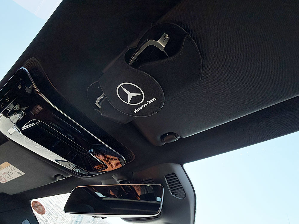こサングラスホルダーが標準装備されていないクルマばかり乗っている身としてはサンバイザー付近にメーカーロゴ入りのこれを取り付けるのはもはや様式美?