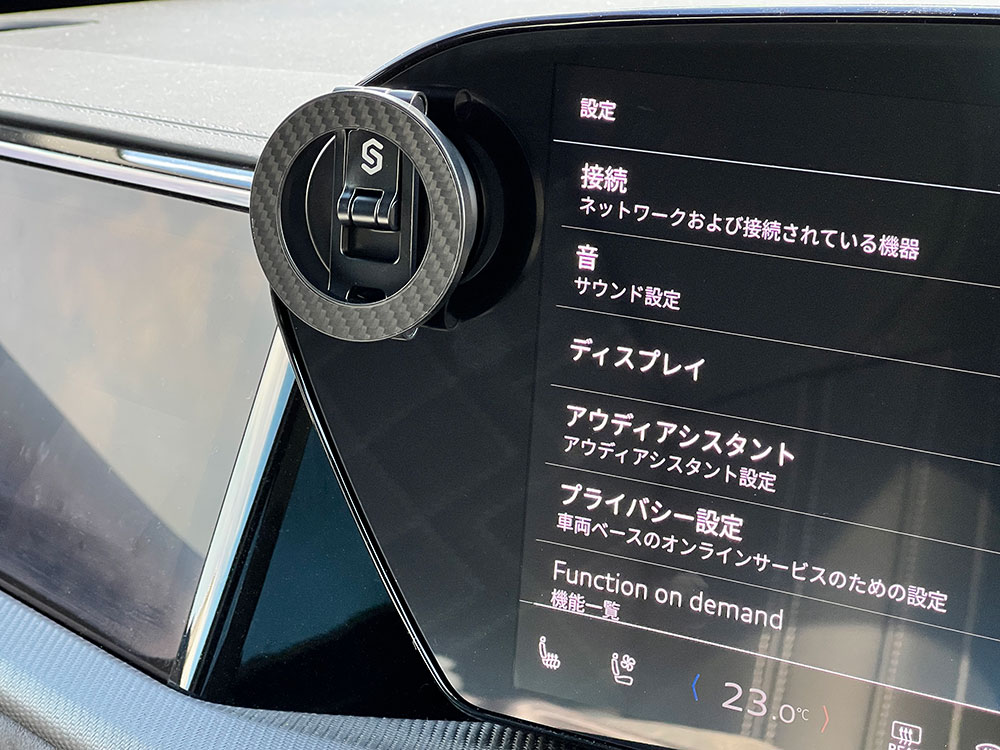 あの横長ディスプレイのフチも余白だらけだったので今時有線接続しかできないCarPlay接続の為に、SQ5のディスプレイの広いフチにスマートフォンフォルダーの台座をべったり貼り付けましたっけ。一度使っただけでディーラーへひきとられていきましたけど……。