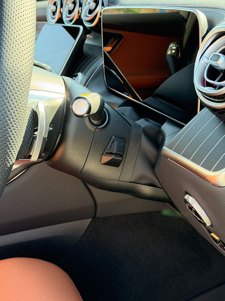 クルマによってはチケットホルダーの代わりになるようなちょっと挟んで於けるスリット的な部分が内装にあったりするんですが(Macan GTSはメーターの右側の吹き出し口のフチがそれ用に便利だった)、GLC Coupeにはそれらしい部分はなし。