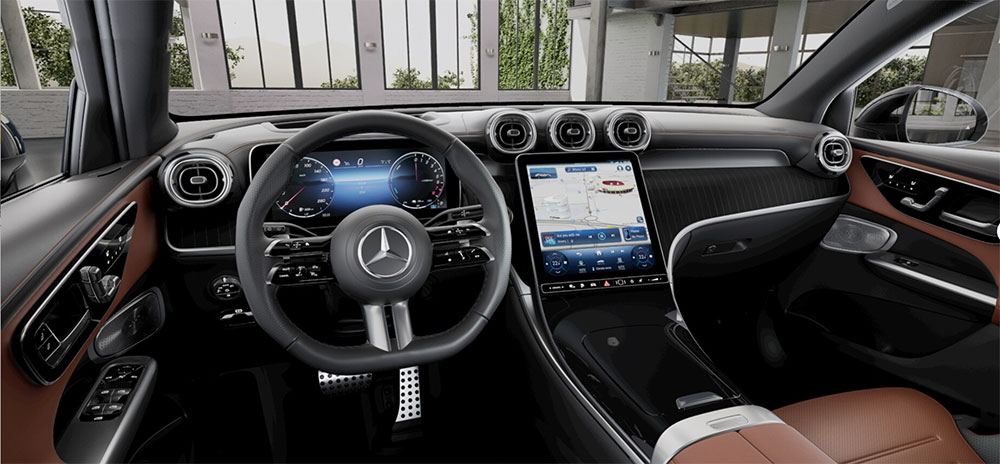 コンフィギュレーターをいじっていた時にはGLC Coupeの内装、とくにダッシュボードからドアに広がる現行メルセデスに使われている基本デザインに関しては演出過多だと感じていました。
